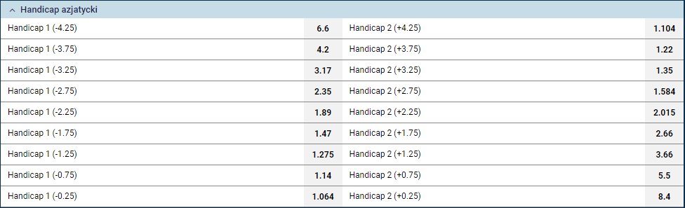 Wiemy już czym różnią się między sobą handicapy europejski i handicap azjatycki. Wiemy jakie plusy i minusy towarzyszą każdemu z nich. Dziś przyjrzymy się dużo bardziej szczegółowo poszczególnym zakładom jakie możemy zawrzeć w ramach handicapu. Skupimy się przede wszystkim na jego azjatyckiej odmianie, ponieważ oferuje ona dużo większe możliwości i to właśnie jej specyficzne oznaczenia budzą postrach wśród młodych adeptów sztuki typowania.