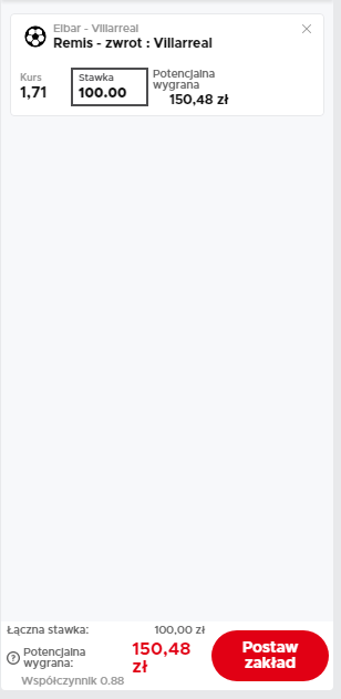 Powiedzmy sobie szczerze – ostatnia seria dziewięciu meczów bez zwycięstwa (sześc porażek, trzy remisy), która zepchnęła Eibar do strefy spadkowej, nie wróży rewelacji w dalszej walce tego klubu o utrzymanie. Szczególnie ważne mecze, z bezpośrednimi rywalami do osiągnięcia tego celu Valladolid i Huescą stracili u siebie cenne punkty remisując pod 1:1. Tym razem będą gościć mocniejszą ekipę Villareal, a z zespołami lepszymi nie szło im ostatnio zbyt dobrze (1:2 Atletico, 0:2 Sevilla). Pogromów może nie było, ale 0 punktów to ciągle 0 punktów. Dorzućmy do tego fatalne występy na swoim boisku – drużyna Basków wygrała tylko jeden z trzynastu meczów rozegranych u siebie na stadionie Ipurua. Goście z Żółtej Łodzi Podwodnej ostatnio przegrali rzutem na taśmę z Valencią 1:2 tracąc dwa gole w przeciągu ostatnich minut spotkania. Zespół ten również zawodzi, to była ich trzecia porażka w ostatnich czterech meczach ligowych i ósma kolejka ligowa z rzędu bez zwycięstwa, a początek sezonu można by rzec, rozbudził apetyty ich kibiców. Pozytywem w ostatnich tygodniach była zdecydowania wyjazdowa wygrana w Kijowie z Dynamem 2:0 w Lidze Europy, czas więc także na przełamanie w La Liga. Villareal musi w końcu zacząć punktować jeżeli chce myśleć o grze w Europie również w przyszłym sezonie. Gdyby nie mecz w środku tygodnia i perspektywa rewanżu, który wydaje się być formalnością, ale nigdy nie wiadomo, można by było grac swobodnie na wygraną gości. Dlatego zagrajmy to ostrożniej, ubezpieczając zakład zwrotem stawki na wypadek remisu.