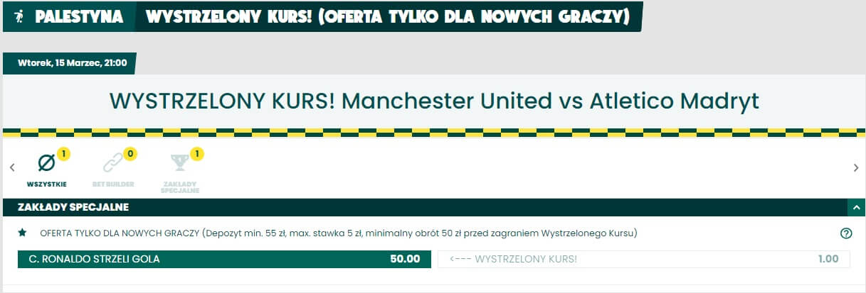 - Zagraj zakład na gola Cristiano Ronaldo W TYM MIEJSCU (nie z oferty głównej na ten mecz)
