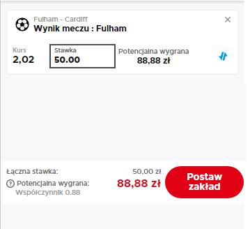 Zaklad bez ryzyka ze zwrotem na konto główne do 50PLN
