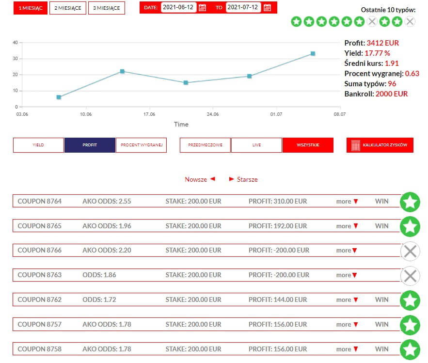 Dziękujemy za zaufanie. Okres Euro 2020 był bardzo intensywny. Otrzymaliście od naszych typerów typy darmowe jak i płatne z euro, nba, siatkówki i tenisa.