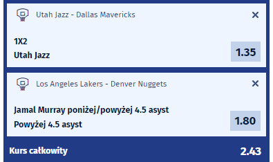 Ciężko powiedzieć czy to gra w bańce, czy też brak gry przez dłuższy czas czy też inny czynnik wpłynął na postawę koszykarzy Los Angeles Lakers, ale ich gra woła o pomstę do nieba. Przegrywają mecz za mecze i to w wielu przypadkach w słabym stylu. Denver również miało swoje problemy, ale było to spowodowane głównie kontuzjami. Po przerwie do gry wrócił Jamal Murray i miał wielki udział przy zwycięstwie swojego zespołu nad Utah. W pierwszym meczu w bańce Kanadyjczyk zaliczył 23 punkty, 12 zbiórek oraz 8 asyst. Jeśli do punktów czy asyst nie można się przyczepić bo w sezonie zdobywa średnio 19 punktów na mecz i 5 asyst, to zaskoczeniem z pewnością było aż 12 zbiórek rozgrywającego Denver. Spotkania z taką liczbą zbiórek nie powtórzy natomiast liczbę asyst może jak najbardziej zrobić podobną. Linia bardzo korzystna szczególnie, że w poprzednich meczach z Lakersami zdobywał odpowiednio 10 i 7. Nie zobaczymy w tym spotkaniu Willa Bartona co też sprzyja większemu trzymaniu piłki przez Murraya.