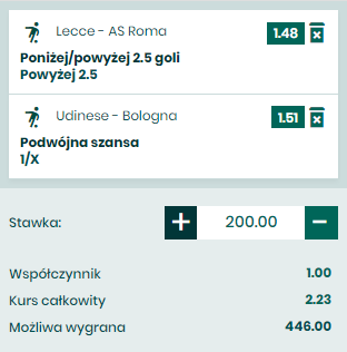Pięć meczów i sześć punktów do dotychczasowy dorobek z beniaminka z Lecce – całkiem przyzwoity jak na potencjał drużyny prowadzonej przez Fabio Liveraniego. Ekipa ta prezentuje dość ofensywny styl gry, czego efektem jest sześć strzelonych goli, ale też 11 straconych. Wesoło jest też w szeregach Romy – 10 bramek zdobytych, 9 straconych. Lecce w ostatniej kolejce wygrało 3:1 ze SPAL, wcześniej przegrało 1:4 z Napoli czy wygrało 2:1 z Torino. Potrafią więc strzelić gola, ale gra w obronie siłą rzeczy mocno szwankuje. Goście powinni ten fakt wykorzystać, ale że ich defensywa również jest mocno niepewna, gospodarze zapewne dorzucą także coś od siebie.