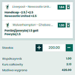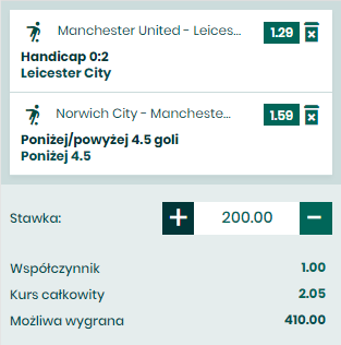 Drugi kupon na Premier League, a pierwszym meczu Leicester przyjeżdża do Manchesteru na mecz z United. Gospodarzy niektórzy stawiali już na piedestał po masakrze jaką na inaugurację urządzili Chelsea, potem jednak było już co najwyżej przeciętnie – 2 remisy i porażka. Goście z Leicester, jak to oni, pragmatycznie, do przodu, bez porażki – 2 remisy i 2 zwycięstwa. Przeciwnie do wielu, my uważamy, że to goście są faworytem do zwycięstwa. Prezentują się ogólnie lepiej w porównaniu do chaotycznego futbolu prezentowanego przez drużynę Solskjaera. Że w ogóle wystawiono takie handi na Betfanie to już dla nas niezłe święto, a że po takim kursie – święto podwójne. Leicester ma poważne szanse na zdobycie tutaj bramki, grają w tym sezonie ze sporą skutecznością, a Man United bramki traci regularnie. Nikt tutaj raczej nie zamknie się na swojej połowie czekając na ciosy, a naprawdę nie sądzimy, żeby Man united nawet jak się przełamie wygrał ten mecz więcej niż jedną bramką.
