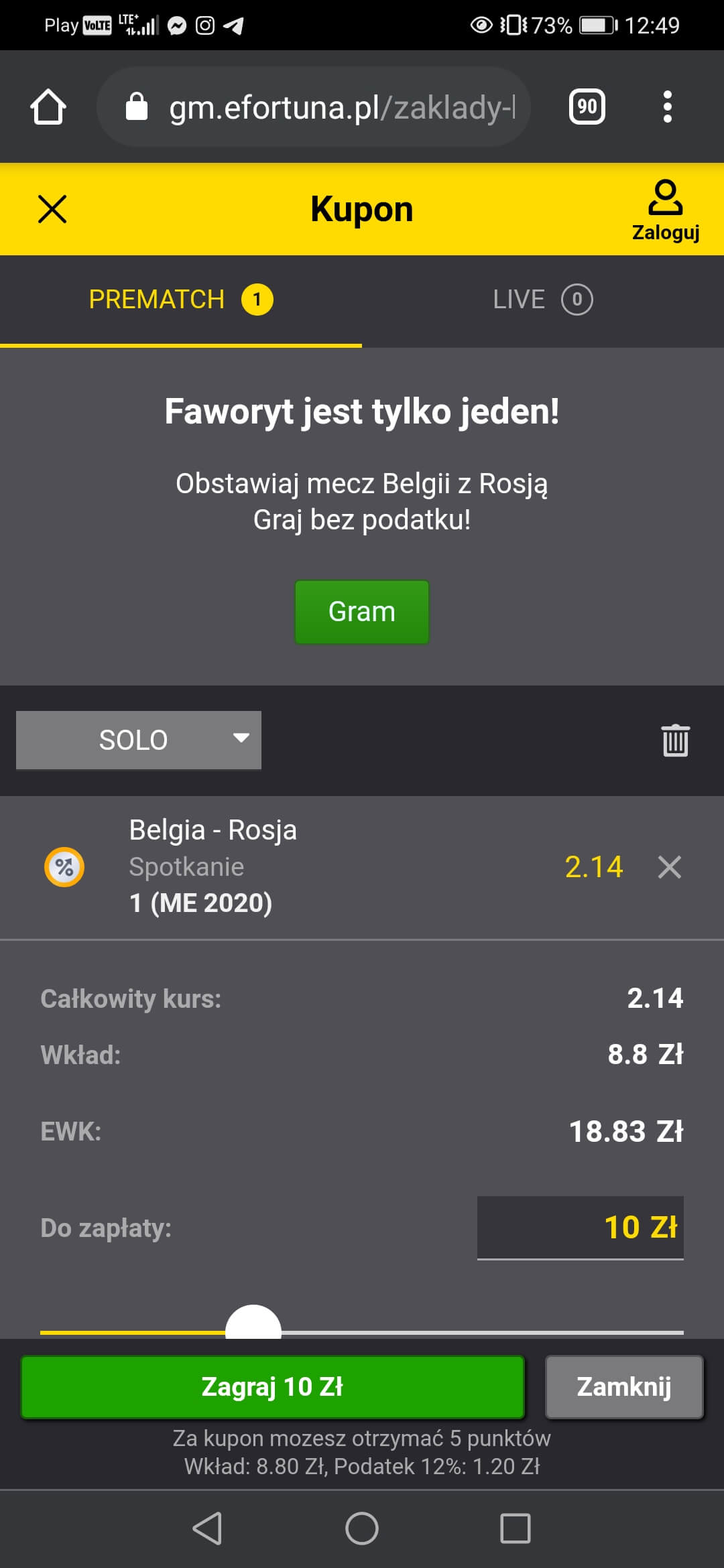 FAWORYT NA START po najwyższym KURSIE! Belgia to jeden z trzech głównych faworytów do wygrania EURO, obok Anglii i Francji. Na inaugurację Czerwone Diabły zagrają z Rosją, a mecz odbędzie się na terenie przeciwnika, w St.Petersburgu. W XXI wieku te reprezentacje mierzyły się 6 razy, Rosjanom tylko raz udało się zremisować, pozostałe 5 starć to zwycięstwa Belgów. W każdym z trzech ostatnich spotkań Belgia wbijała Rosjanom minimum 3 bramki, każde z nich było festiwalem bramkowym – 3 mecze dostarczyły 15 goli. To najlepsza zachęta, aby sobotni wieczór spędzić oglądając konfrontację Czerwonych Diabłów z Rosjanami.