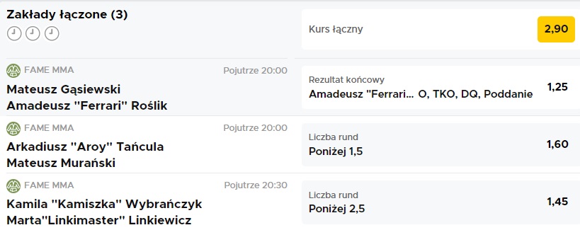 Chcesz obstawić swoich ulubieńców na gali FAME MMA? Możesz to zrobić tylko na BETCLIC a jeśli nie masz konta dodatkowo zgarnąć aż 550 PLN zakład bez ryzyka + pakiet premium w serwisie BET4WIN