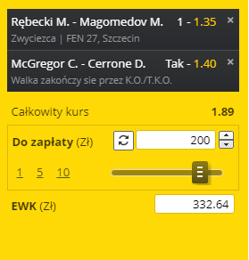 Stawka: min. 30 zł brutto Warunek: min. 1 zdarzenia na kuponie musi być związane z MMA