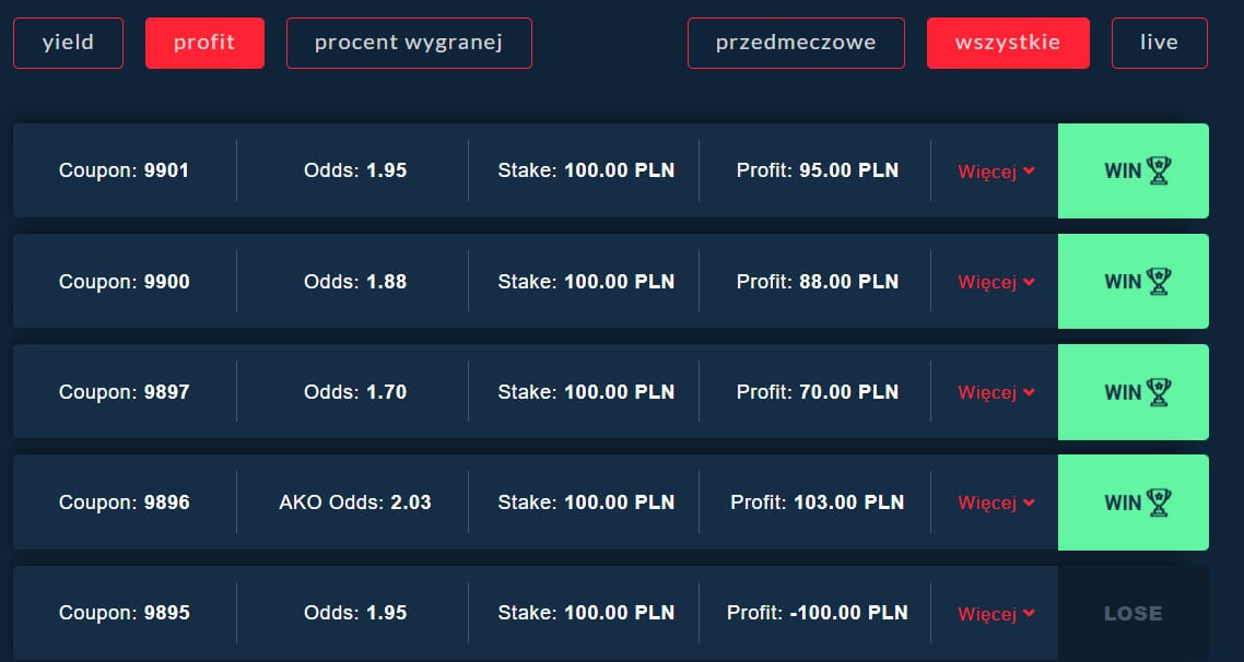 Każda strategia charakteryzuje się swoim własnym systemem stawek. - UWAGA! Strategie nie wpływają na rodzaj i typ otrzymywanych kuponów!