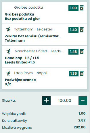 Zaklad bez ryzyka bez obrotu (zwrot na konto główne) 600 PLN
