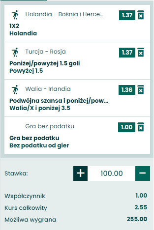 Zaklad bez ryzyka bez obrotu (zwrot na konto główne) 600 PLN