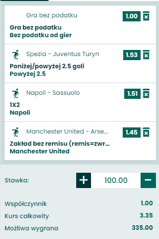 Zaklad bez ryzyka bez obrotu (zwrot na konto główne) 600 PLN