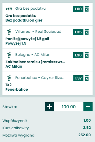 Zaklad bez ryzyka bez obrotu (zwrot na konto główne) 600 PLN