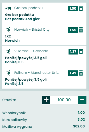 Zaklad bez ryzyka bez obrotu (zwrot na konto główne) 600 PLN