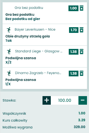 Przed nami pierwsza kolejka rozgrywek fazy grupowej ligi Europy. Pierwszym meczem, jaki umieszczamy na kuponie bez podatku, jest starcie Bayeru Leverkusen z Niceą. Bayer w końcu przełamał się w Bundeslidze wygrywając w czwartej kolejce po trzech meczach bez zwycięstwa (3 remisy). Ekipa Leverkusen jest więc niepokonana, a wizualnie imponuje dynamiką i poukładaniem szczególnie w fazie ataku. Aptekarze jak co roku stanowią ekipę swojego boiska, gdzie ostatnio potrafili zremisować z mocnym Lipskiem 1:1. Nice miało niedawno serię trzech ligowych meczów bez zwycięstwa, po których nadszedł ostatnio jednak czas na dwie wygrane z rzędu. Zespół jest nieco niestabilny, brakuje równowagi pomiędzy atakiem i defensywą, co często owocuje brakiem wspracia w poszczególnych formacjach w czego efekcie zespół zarówno zdobywa, jak i regularnie traci bramki. Drużyna z Francji gra systemem 3-4-2-1, co może stworzyć wspaniałe warunki do organizowania kontrataków w meczu z drużyną, która lubi prowadzić grę i która dużo atakuje, a taką bez wątpienia jest Bayer Leverkusen. Oba zespoły powinny w tym meczu zarówno strzelić, jak i stracić bramkę.