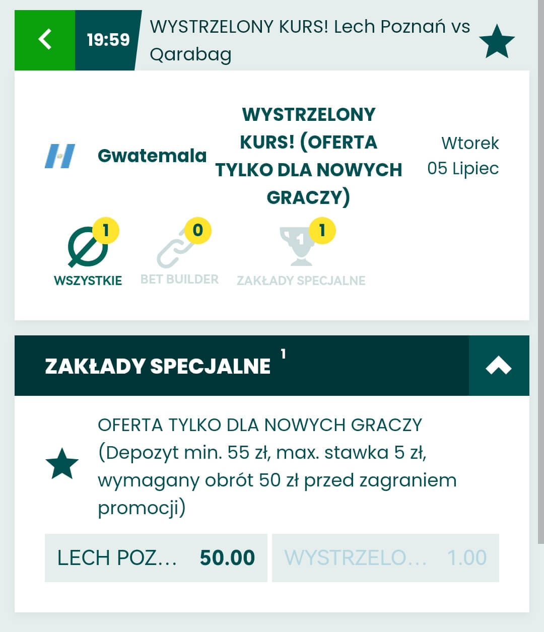 - Zagraj zakład na wygraną Lecha Poznań we wtorkowym meczu z Karabachem Agdam W TYM MIEJSCU (nie z oferty głównej na ten mecz)