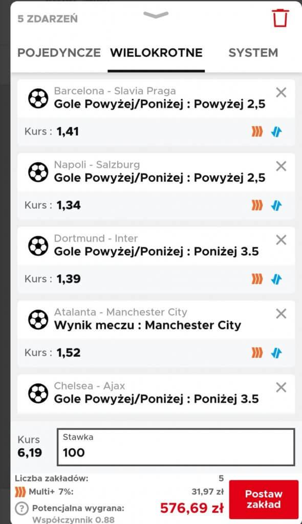 3. WYKORZYSTAJ PIERWSZY BONUS – ZAGRAJ PIERWSZY KUPON BEZ RYZYKA AŻ DO 500 PLN Z KURSEM MIN 2.0