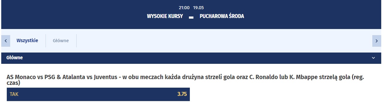 Prognoza: ten wielki finał zostanie rozegrany na Stade de France w Paryżu. W 13 z 15 poprzednich spotkań pomiędzy tymi zespołami we wszystkich rozgrywkach padało powyżej 2,5 gola. Natomiast w 4 z 5 ostatnich bezpośrednich potyczek obie drużyny trafiały do siatki, a ogólnie w tych wspomnianych pięciu konfrontacjach zanotowaliśmy aż 22 gole. Średnia goli, które w tym sezonie ligowym padły w meczach z udziałem Monaco to 3,2, a PSG – 3,0. Jedni i drudzy dysponują wielkim potencjałem ofensywnym, który wielokrotnie w tym sezonie pokazywali.