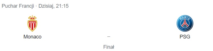 PSG – Mauricio Pochettino liczy jeszcze na zmianę decyzji i odwieszenie Nemayra i Kimpembe na to finałowe spotkanie: Nie wiemy jeszcze, czy Neymar i Kimpembe będą dostępni. Czekamy na decyzję, ale chcemy wygrać ten finał. Skupiamy się na zwycięstwie, to nasz jedyny cel. Brak wygranej w Pucharze Francji, który wygrywali pięć razy w ciągu ostatnich sześciu sezonów oraz brak triumfu w lidze to byłyby dwa wielkie ciosy dla właścicieli klubu, po wcześniejszym odpadnięciu z Ligi Mistrzów. Szkoleniowiec zespołu z Paryża dodał również: W tym sezonie Monako dwukrotnie nas pokonało, co jest częścią historii sezonu. Fizycznie są mocną stroną o dużej jakości. Po naszym zwycięstwie z Barcą w Lidze Mistrzów, Monaco pokonało nas u siebie, byli skuteczni i dobrze bronili. Ale teraz to finał i te zawsze są inne. Mamy nadzieję, że w środę wieczorem odwrócimy bieg wydarzeń.