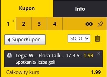 TYP: zwycięstwo Legia i poniżej 3,5 gola (kurs 1,99).