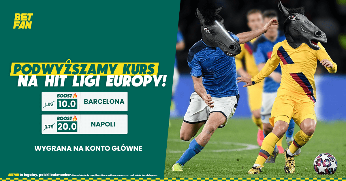 - Zagraj zakład na zwycięstwo Barcelony (po kursie 10.0!) lub Napoli (po kursie 20.0!) w hicie Ligi Europy (wybór należy do Ciebie!) W TYM MIEJSCU (nie z oferty głównej na ten mecz)