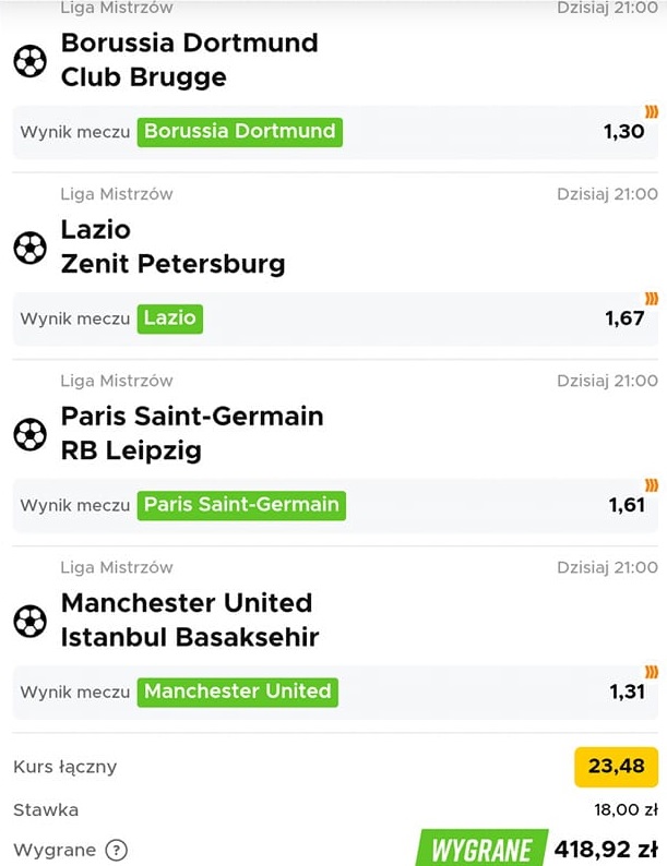 Ostatnie wygrane kupony dzięki naszym typerom ⤵