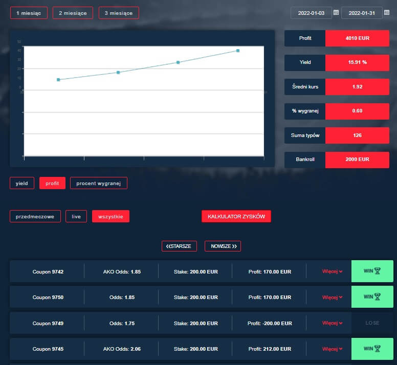 Wreszcie jest PROMKA z której musi skorzystać każdy kto chce regularnie ogrywać bukmachera! Dostęp do serwisu i TYPERÓW PREMIUM BET4WIN ZA DARMO. Naszym nowym partnerem zostaje bardzo mocny gracz w Europie ale i w Polsce – SUPERBET