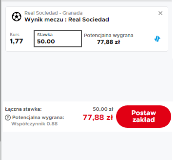 Zaklad bez ryzyka ze zwrotem na konto główne do 50PLN