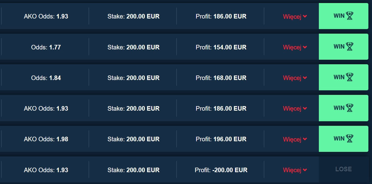 - ✅28/48 TRAFIONYCH KUPONÓW CAŁOŚCIOWYCH