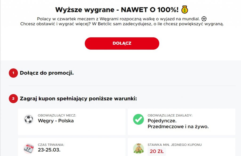 Chcesz obstawić i wygrać więcej? W Betclic sam zadecydujesz, o ile chcesz powiększyć wygraną.
