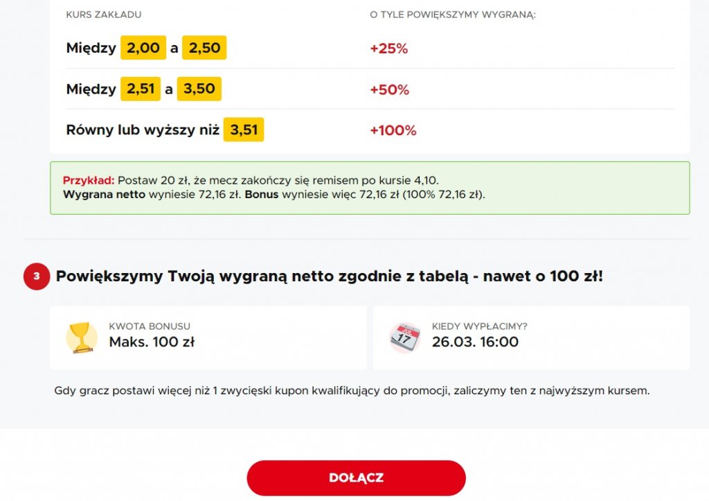 Zaklad bez ryzyka bez obrotu (zwrot na konto główne) 50 PLN