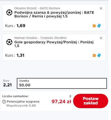 Typ: BATE wygra lub remis i powyżej 1,5 bramki w meczu