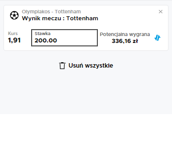 Tottenham, ubiegłoroczny finalista Ligi Mistrzów jedzie do Pireusu na mecz z tamtejszym Olympiacosem. W tamtym sezonie The Coys znacząco przekroczył oczekiwania dochodząc do finału i to osiągnięcie będzie im bardzo ciężko powtórzyć. W tej grupie, gdzie grają jeszcze Bayern i Crvena Zvezda karty wyglądają na rozdane – Bayern i Tottenham nie powinni mieć problemów z wyjściem z grupy, zaś Grekom i Serbom pozostanie walka o awans do Ligi Europy. Zespół z Pireusu nie miał łatwo w eliminacjach (Viktorii Pilzno, Basaksehir i Krasnodar, który wcześniej odprawił Porto), dobrze wygląda także w lidze greckiej, jednak Olympiacos nie jest szczególnie znany z dobrej gry z uznanymi firmami i raczej w takich pojedynkach oddaje plecy, szczególnie biorąc pod uwagę potencjał ofensywny Tottenhamu (dochodzący do formy Kane, Son i nadal pozostający w klubie pomimo plotek Eriksen), pozwalający na zdobywaniu średnio ponad 2 bramek w meczach ligowych, po dwie bramki także strzelone firmom dużo mocniejszym od Olympiacosu – Arsenalowi i Manchesterowi City. Tottenham na dobry początek nie odda punktów, a wręcz przeciwnie – wywiezie ich komplet pomimo ciężkości greckiego terenu.