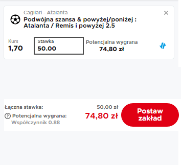 Typ: Atalanta wygra lub remis i powyżej 2,5 bramki w meczu