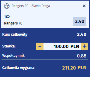 Na boisku na Ibrox Stadium w Glasgow w czwartek wieczorem (20:00 czasu miejscowego) odbędzie się rewanż meczu 1/8 finału Ligi Europejskiej UEFA pomiędzy Rangers i Slavią Praga. Drużyna gospodarzy prowadzona przez Stevena Gerrarda, która świętowała zdobycie tytułu mistrza kraju po długiej przerwie około tygodnia temu, podchodzi do tego rewanżu z przewagą, po wyniku 1:1 w pierwszym meczu z Czechami. Rangers nie grali w miniony weekend, więc fizycznie mogli się nieco odbudować. Slavia po stracie bramki u siebie za wszelką cenę musi myśleć o zdobyciu bramki, oczywiście jeżeli chce myśleć o awansie. Główni kandydaci na Mistrzów Czech (14 pkt przewagi nad drugą w tabeli Spartą Praga) ostatnio rozbili Mladę Bolesław 3:0 w lidze, ale to zdecydowanie inni poziom niż Rangersi. Spójrzmy na formę zespołu z Glasgow u siebie – W 21 meczach u siebie Rangers mają rekord 20 zwycięstw i 1 remis. Sześć z ostatnich ośmiu meczów na Ibrox bez straty bramki. Slavia w Lidze Europy średnio na wyjazdach – 3 porażki na 5 spotkań. Podczas jutrzejszego spotkania muszą się odsłonić i zaryzykować przez wynik z pierwszego spotkania i w naszej ocenie słabo na tym wyjdą. Zwycięstwo Glasgow Rangers po naprawdę fajnym kursie.
