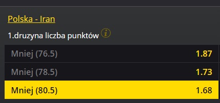 Proponowane typy na to spotkanie: Polska liczba punktów – poniżej 80,5