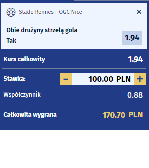 W najbliższy piątek o 21:00 Rennes będzie gościć Nice. Gospodarze, ostatnio zdecydowanie pod formą, mają nadzieję na zakończenie niechlubnej serii 6 meczów bez zwycięstwa. Zdegradowała ich ona na ósmą pozycję, czyli klub ten na ten moment jest poza kwalifikacją do pucharów europejskich. Przed nimi zaległy mecz z Marsylią, która wyprzedziła ich już w tabeli, także dla Rennes bardzo dobrze byłoby, gdyby mecz z Nice po prostu wygrali. Goście to rozczarowanie sezonu. Pretendenci do bitwy o europejskie kwalifikacje bronią się przed spadkiem obecnie zajmując 16 pozycję, także ich forma, a raczej jej brak to nie tylko spore zaskoczenie, ale przede wszystkim ogromne rozczarowanie. W 2021 roku rekord Nicei jest po prostu słaby – 2 zwycięstwa, 1 remis, 7 porażek. Zachowali także w tym sezonie tylko 7 czystych kont w 26 spotkaniach. Rennes ostatnio pod tym kątem wcale nie jest lepsze – osiągnęli tylko 1 czyste konto w ostatnich 8 meczach. Szczególnie źle prezentuje się ta statystyka w ich meczach domowych – zaledwie 1 czyste konto w 16 spotkaniach! Nicea miała tylko 1 czyste konto w ostatnich 6 wyjazdach. Tutaj muszą paść bramki, chyba że futbol ponownie zrobi kurtyzanę z logiki. Gramy po doskonałym kursie, że obie drużyny zarówno strzelą, jak i stracą gola.