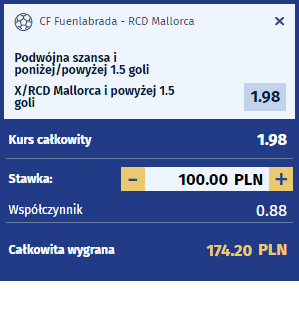 Ze względu na zacieśnienie rozgrywek przez różne udziwnienia spowodowanego koronawirusem i zamieszaniem z tym związanym w poprzednim i obecnym sezonie, rzadko kiedy obecnie mamy do czynienia z posuchą w ofercie bukmacherskiej, niestety jutrzejszy poniedziałek pod tym względem przypomni nam normalne czasy. Zdarzeń jak na lekarstwo, a my dla Was wybieramy zaplecze hiszpańskiej La Liga, gdzie Fuenlabrada podejmuje walczącą o awans Mallorkę. Dodajmy, że gospodarze też przed sezonem byli typowani do awansu, jednak jak zwykle w ich przypadku, niewiele z tego wyjdzie. Miejsce w tabeli numer 13, 39 punktów i 10 punktów straty do strefy barażowej na niemal już ostatniej prostej to zbyt wiele, aby drużyna ta w obecnej formie mogła o awans powalczyć. Mallorca, drużyna, której starszym fanom hiszpańskiego futbolu nie trzeba przedstawiać, ma szansę objąć po tym meczu samodzielnie fotel lidera – wystarczy tego spotkania nie przegrać. Co prawda w ostatnich dwóch kolejkach zdobyli zaledwie punkt, co pozwoliło Espanyolowi Barcelona na dogonienie ich w tabeli, ale wydaje nam się, że kryzys już za Mallorką i drużyna z rajskiej wyspy będzie chciała odrobić wszelkie zaległości. Zauważmy, że Fuenlabrada to drugi najgorszy zespół w tabeli meczów u siebie w tym sezonie, w którym odnieśli dwa zwycięstwa z piętnastu meczów. Goście są tu zdecydowanymi faworytami, ale ze względu na niedawny dołek nie stawiamy na ich zwycięstwo, ale na brak porażki. Linia OV 1,5 zieleniła się w 7/8 ostatnich spotkań Fuenlabrady i 4/6 ostatnich spotkań Mallorki, na własnym boisku dla Fuenlabrady statystyka ta wynosi 6/7 ostatnich spotkań, a dla gości na wyjazdach 4/6. Dlatego idziemy w zakład łączony, który sprawdzi się w momencie wpadnięcia drugiej bramki w tym meczu.