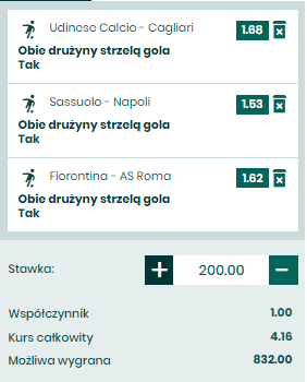 Fiorentina srzelała bramki w zdecydowanej większości meczów u siebie (wyjątki – Juventus i Lecce). Roma w swoich meczach jest skuteczna – 15 bramek strzelonych w ostatnich 6 meczach, a jednocześnie straciła 3 bramki w ostatnich dwóch spotkaniach. W meczach Violi i Romy we Florencji zakłąd BTTS stanowi pewna tradycję. Nie widzimy powodu, aby zespoły odeszły w tym spotkaniu od swoich statystyk i nie trafiły przynajmniej po razie. Gramy obie druzyny strzelą bramkę.