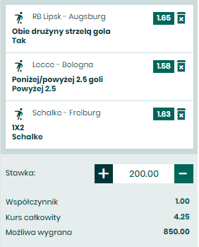 W rewelacyjnej formie, zwłaszcza strzeleckiej, są w tym sezonie piłkarze Lipska. Podopieczni Juliana Nagelsmanna zdobyli aż 45 bramek w 16 meczach, co daje średnią blisko trzech trafień w każdym spotkaniu. Zmierzą za to z zespołem środka tabeli, który prezentuje jdnak bardzo wesoły futbol. Bilans bramkowy Augsburga to 27:28 i można się zatem spodziewać, że fani z Lipska obejrzą sporo trafień.