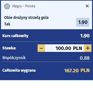 Oprócz DARMOWEGO ZAKŁADU BEZ RYZYKA AZ DO 155 PLN obejmuje Cię promocja na mecz Polska – Węgry