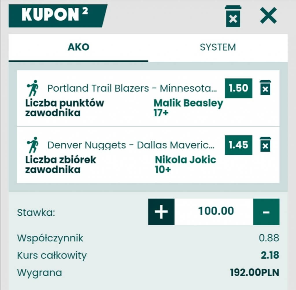 To co gra ostatnimi czasy ekipa z Oregonu w obronie to istny dramat. Prowadzić różnicą 20 punktów z Chicago i przegrać mecz to wyjątkowa sytuacja. Jednakże w jeden mecz nie poprawią swojej obrony diametralnie. Stąd pokuszę się o typ na Malika Beasley’a który to pod nieobecność Townsa stał się drugą opcją w ataku ekipy z Minnesoty zaraz po Russellu. Malik oddaje w każdy meczu ponad 15 rzutów i nawet jak gra na słabszej skuteczności potrafi dodać kilka osobistych i linijki pokrywa. Dziś liczę, że przeciwko słabej obronie Portland zakręci się w okolicach 20kilku punktów.
