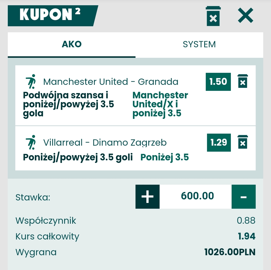 Prognoza – Manchester United jest na fali, wygrał 5 z sześciu ostatnich spotkań i przegrał tylko raz na 18 ostatnich meczów w różnych rozgrywkach. Wątpliwe, aby Granada była w staniu popsuć te znakomite statystyki. W pierwszym meczu Czerwone Diabły wygrały pewnie 2:0, a różnica w klasie pomiędzy tymi zespołami był widoczna. Podobnego przebiegu spotkania możemy się spodziewać na Old Trafford. Nie spodziewam się tu pogromu Hiszpanów, wszak Manchester United nie ma w zwyczaju strzelać wielu bramek. W niedzielę podopieczni Ole Gunnara Solskjaera strzelili 3 bramki w starciu z Tottenhamem, ale to był taki jedyny przypadek w ostatnich 11-tu meczach. W pierwszym meczu pomiędzy tymi klubami oddano tylko 6 strzałów w światło bramki.