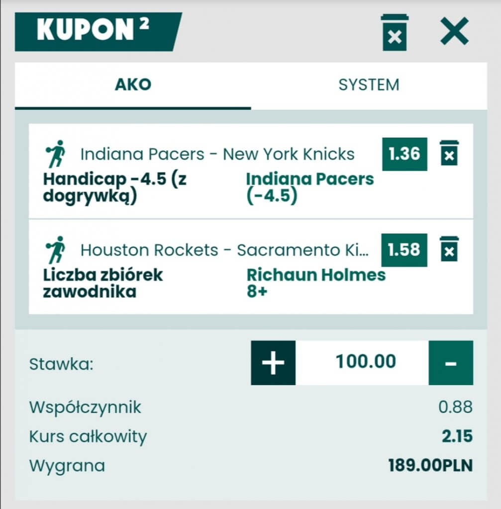 Sacramento wydaje się być lepszą drużyną niż w poprzednim roku mimo transferów, któ®e raczej powinny tą ekipę osłabić. O wiele lepiej prezentuje się w tym sezonie center gości Holmes, który notuje w tym sezonie 13,4 pkt oraz 9,4 zbiórki na mecz przy srednio 26 minutach gry. Z meczu na mecz dostaje on więcej czasu i dzięki temu kręci lepsze liczby. W poprzednim starciu, które odbyło się między tymi zespołami niedawno Holmes zdobył 22 punkty i zebrał z tablicy 13 piłek. Dziś można ponownie spodziewać się okolic double-double tego zawodnika. Zarówno Houston jak i Sacramento grają szybką koszykówkę więc rzutów będzie dużo. Jedni i drudzy również dużo pudłują więc szans na zebranie piłek powinno tak samo nie brakować.