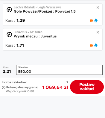 Ciekawe zestawienie w naszej pięknej Ekstraklasie w środkowotygodniowej kolejce – do Gdańska na mecz z tamtejszą Lechią przyjeżdża Legia Warszawa. Drużyna ze stolicy dzięki zwycięstwom na wiosnę zbudowała sobie sześciopunktową przewagę nad rywalami, co daje im niejaki komfort, a wiadomo, że Wojskowi nie lubią musieć i pod presją gra im się ciężej. Lechia również od przerwy zimowej spisuje się lepiej niż zakładali śledzący nasze krajowe podwórko, jednak na Legionistów może to być wciąż za mało i wyjazd trzech punktów z Pomorza do stolicy niekogo nie zadziwi. Mecz powinien być ciekawy, ale my radzimy tu pójść w bezpieczną sumę bramek w liczbie przynajmniej dwóch, która to suma powinna być z łatwością pokryta. Legia bramki strzela, ale także traci – w czterech wiosennych meczach Majeckiego nie pokonali jedynie piłkarze Jagiellonii, a średnia straconych przez drużynę goli to jeden na mecz, zdobytych natomiast prawie trzy. Kierunkuje nas to na BTTS (opcja na singla dla odważniejszych), ale my na potrzeby tego AKO wybieramy bezpieczną formę zakładu obie strzelą, a mianowicie zakład na druga bramkę w meczu.