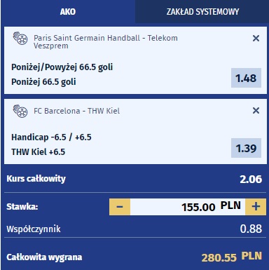 Wczorajszy dubel z turnieju Final 4 udany a więc nie pozostaje nam nic innego jak dziś zrobić dokładnie to samo. Mecz o 3 miejsce pomiędzy PSG a Veszprem zapowiada się ciekawie. Gdybym miał postawić kto wygra w tym spotkaniu szedłbym bardziej w strone PSG bo mam wrażenie ,że Veszprem po takiej przegranej po szalonym spotkaniu i dogrywce nad THW w której byli faworytem będą mieli morale schowane głęboko w d… Z kolei PSG przegrało w 100% zasłużenie a absensje i nie pewna ławka rezerwowych sprawiła ,że Barca rzucając im 37 bramek poprawiła rekord półfinałów. Co warto obstawić w tym spotkaniu? Ja idę w poniżej 66.5 bramki. Uważam ,że ta linia jest mocno przesadzona bo oczywiście o ile PSG ma dziury w obronie i gra szybką piłkę ręczną to mam nadzieje ,że Veszprem będzie chciało choć odrobinę bronić i spowalniać akcję ze względu na swoje zmęczenie po dogrywce. Uważam że poniżej 66.5 bramki to realny scenariusz