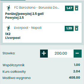 Niezwykle ciekawie zapowiada się również mecz w grupie śmierci oznaczonej literką F, w którą dziś bierzemy na tapetę, a na tym kuponie gramy pojedynek Slavii praga i Interu Mediolan. Pierwszy mecz tych drużyn zakończył się niemałą niespodzianką, kiedy to faworyzowany Inter ledwo zremisował w ostatniej minucie 1:1, a Slavia kontrolowała wydarzenia na boisku przez większą część meczu. No cóż, słabszy mecz czasami trafia się każdej ekipie i tym razem nie sądzimy, aby doszło do powtórki z rozrywki, szczególnie, że stawka tego meczu jest o niebo wyższa. Dla Gospodarzy jest to ostatni dzwonek, aby załapać się na kwalifikację do Ligi Europy (bo na awans dalej w Champions League szanse mają już tylko iluzoryczne), a dla Interu ostatni dzwonek aby walczyć dalej z Borussią i Barceloną o awans do 1/8 finału. Sytuacja jednak nie zależy w pełni od nich i musza trzymać kciuki również za Barcę w pojedynku w/w rywali do awansu. Slavia skradła serca kibiców piłki nożnej w całej Europie, ale umówmy się – nic dwa razy się nie zdarza. Internazionale pozostaje dla nas faworytem zestawienia, szczególnie, że gra toczy się o poważną stawkę. Szykuje nam się ciekawy mecz, w którym uważamy, że padnie sporo bramek. Jako że jednak oba zespoły w tym sezonie lubią spłatać w rozgrywkach europejskich typerskiego figla, idziemy bezpiecznie w przynajmniej dwie bramki w tym meczu.