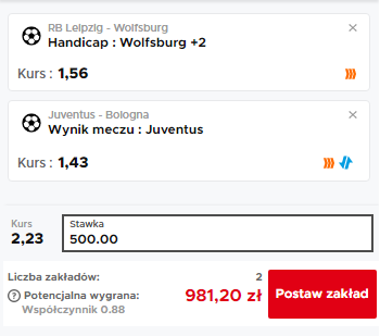 zwycięstwo. Wolfsburg gra za to niezle na wyjazdach, strzelając bramkę w każdym wyjazdowym spotkaniu w Bundeslidze. Być może będzie to koniec wspaniałej serii przyjezdnych i początek czegoś nowego dla ekipy z byłego NRD, jednak my tutaj widzimy punkty wywiezione przez ekipę z Wolfsburga, a jeżeli nawet ich komplet zostanie w Lipsku, to Wolfsburg nie przegra tego meczu więcej niż jedną bramką i tak gramy to spotkanie.
