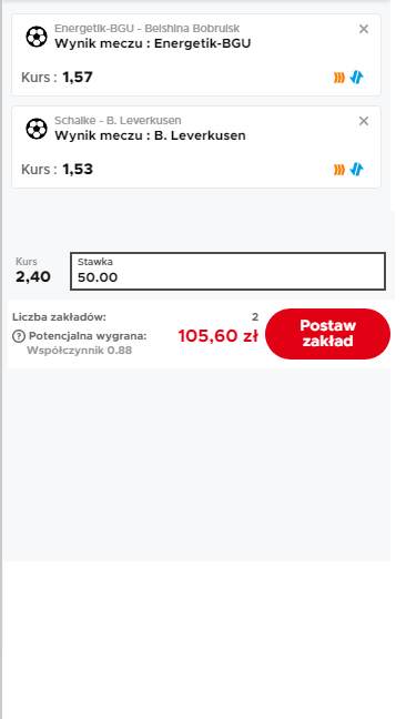 Zaklad bez ryzyka bez obrotu (zwrot na konto główne) 50PLN