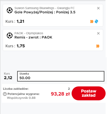 Typ: PAOK wygra (zakład bez remisu)