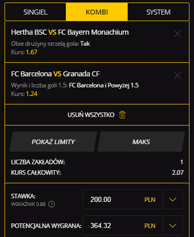21:00 Barcelona – Granada Barcelona wygra + dwie lub więcej bramki w meczu